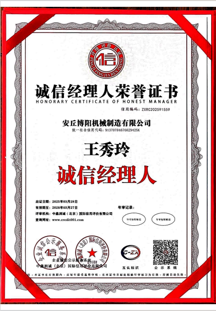 誠信經(jīng)理人榮譽證書