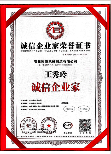 誠信企業(yè)家榮譽證書