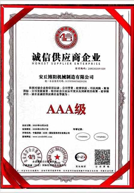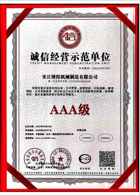 誠信經(jīng)營示范單位AAA級