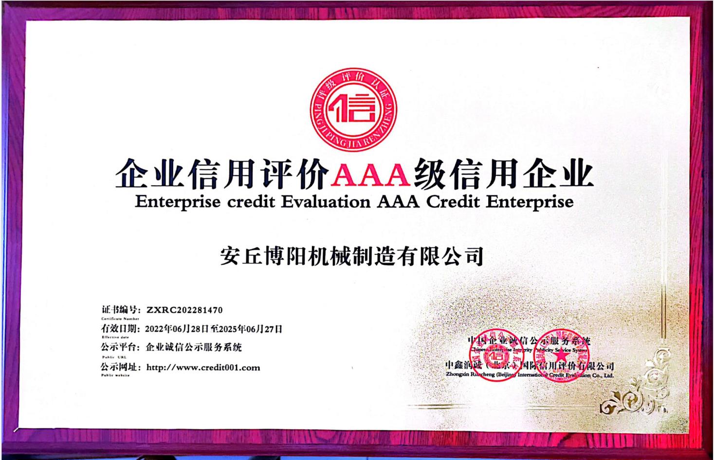 企業(yè)信用等級證書3A級