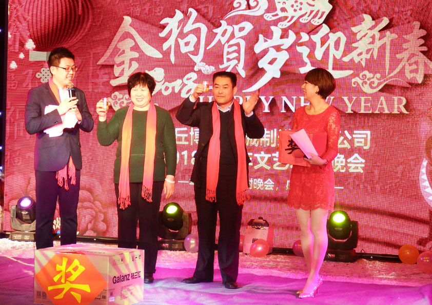 隨著一曲歡快的音樂,舞蹈人員翩翩起舞,安丘博陽機(jī)械2018年年會(huì)慶典正式拉開帷幕。 大會(huì)伊始,博陽總經(jīng)理閆吉祥先生進(jìn)行大會(huì)致辭。閆總首先講述了博陽機(jī)械2017年目標(biāo)完成情況,說到年產(chǎn)值比去年翻了一備時(shí),現(xiàn)場(chǎng)響起了久久不息的掌聲,掌聲里,飽含了所有員工的感動(dòng)和對(duì)成功的驕傲與自豪;接下來閆總帶我們一起回顧了共同走過的2017,各崗位的艱辛與歷程,尤其我們的外出調(diào)試人員,為了工作,雖然缺席我們的年會(huì)慶典,但是他們的辛苦與付出是我們所有人學(xué)習(xí)的榜樣。 接下來是歡樂與榮譽(yù)的穿插進(jìn)行曲。參與節(jié)目的每一位同志,發(fā)揮了*高的水平,聲聲深情,引吭高歌。在歡歌笑語中,是各崗位**員工的表彰及頒獎(jiǎng)環(huán)節(jié),當(dāng)手中接過證書及獎(jiǎng)金的時(shí)候,既是對(duì)2017年付出*好的回報(bào),也是2018年一份沉甸甸的責(zé)任,正是每一位的辛勤付出,才有了年底我們坐在這里的舉杯聯(lián)歡。穿插在節(jié)目當(dāng)中的,還有大家都殷切期盼的抽獎(jiǎng)環(huán)節(jié),大獎(jiǎng)連連出,驚喜不間斷。