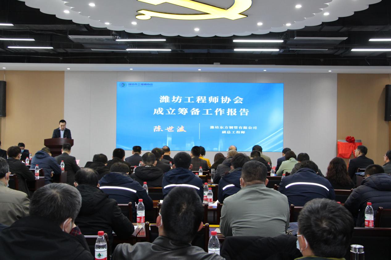 會議第二階第*項:濰坊東方鋼管有限公司副總工程師陳世波代表籌備委員會作《濰坊市工程師協(xié)會成立籌備工作報告》