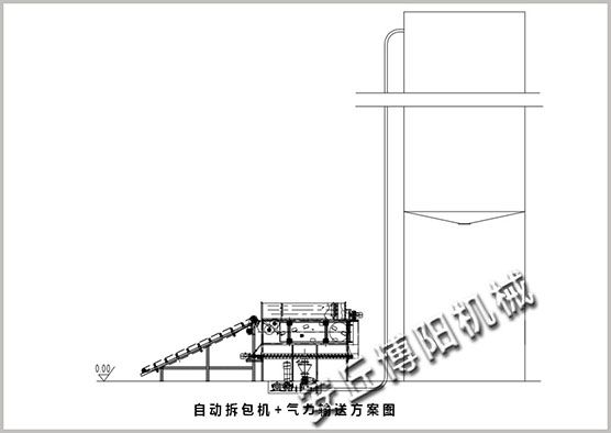 5、破袋、卸料、分離后與其它輸送設備配套使用可完成粉體輸送儲存等功能。
